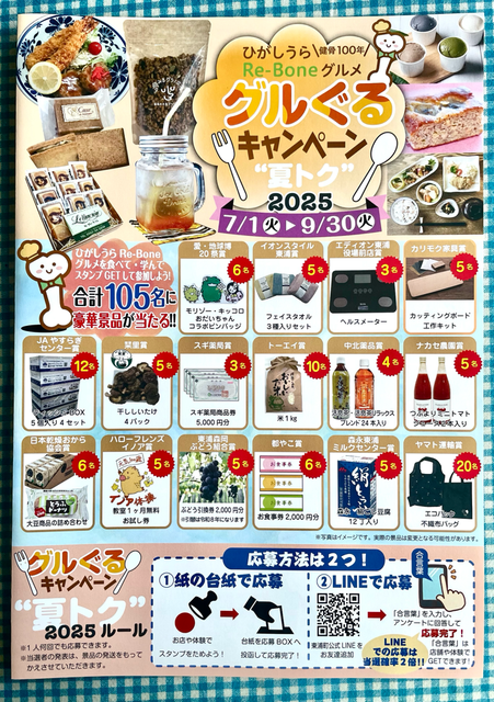 東浦R e -B on eグルメキャンペーンの〆切が近づきました。グルぐるキャンペーン応募者の方に抽選で豪華賞品の当たるチャンスが‼️ ⚠️キャンペーンは9月30日で終了しました。ありがとうございました。
